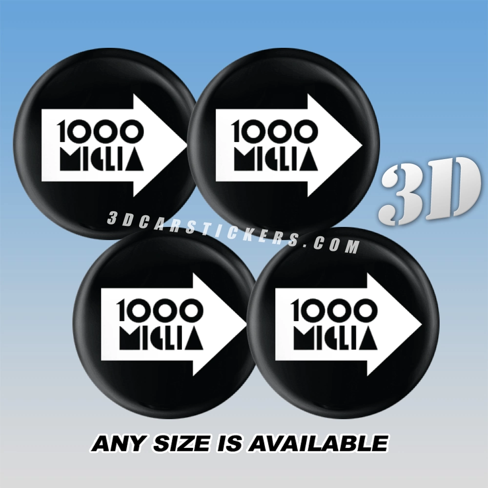 1000 MIGLIA Decals For Wheel Center Caps — White Logo/Black Background