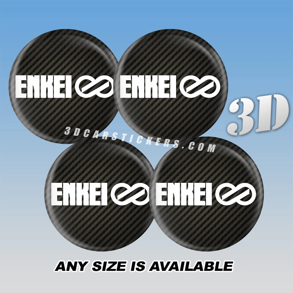 Enkei Decals For Wheel Center Caps - White logo/Carbon Background