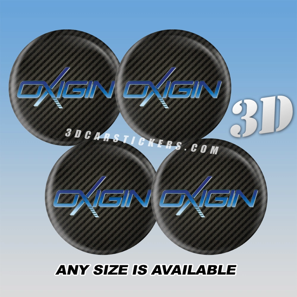 OXIGIN Decals For Wheel Center Caps - Blue logo/Carbon Background