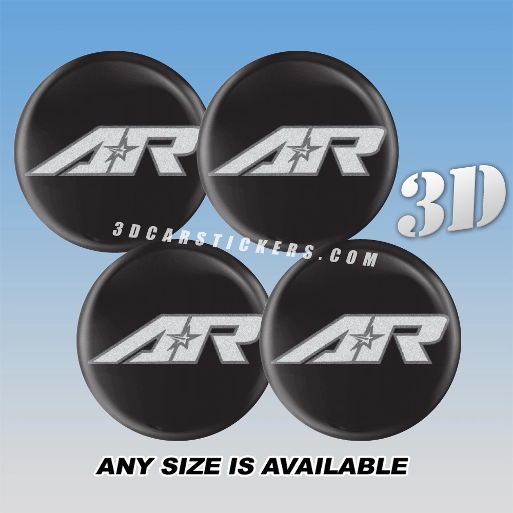 AMERICAN RACING Wheel Rim Center Caps  | Silver/Black — 3D Center Cap Stickers
