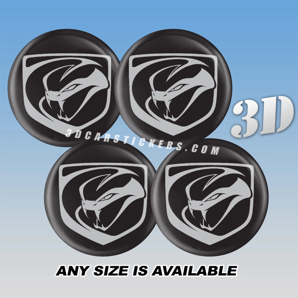 DODGE VIPER "STRYKER" Wheel Center Caps  | Silver/Black — 3D Center Cap Stickers