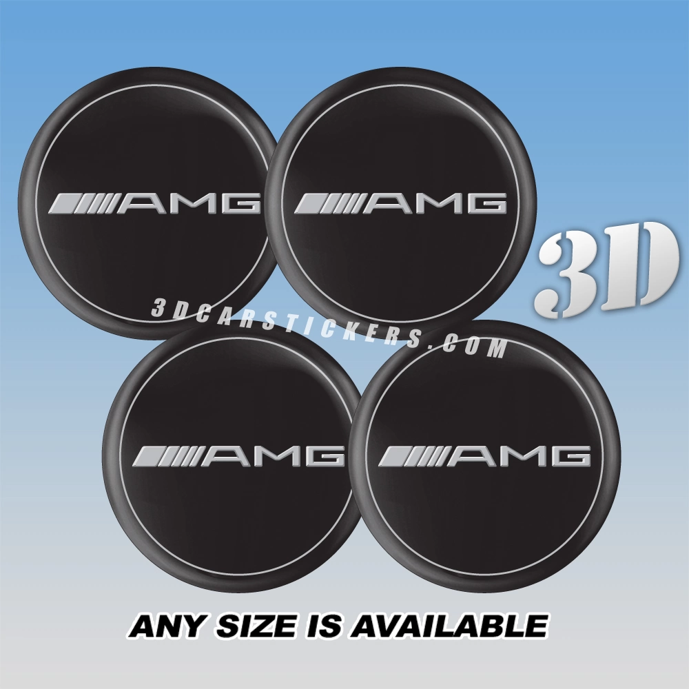 AMG Wheel Center Caps  | Silver/Silver/Black — 3D Center Cap Stickers