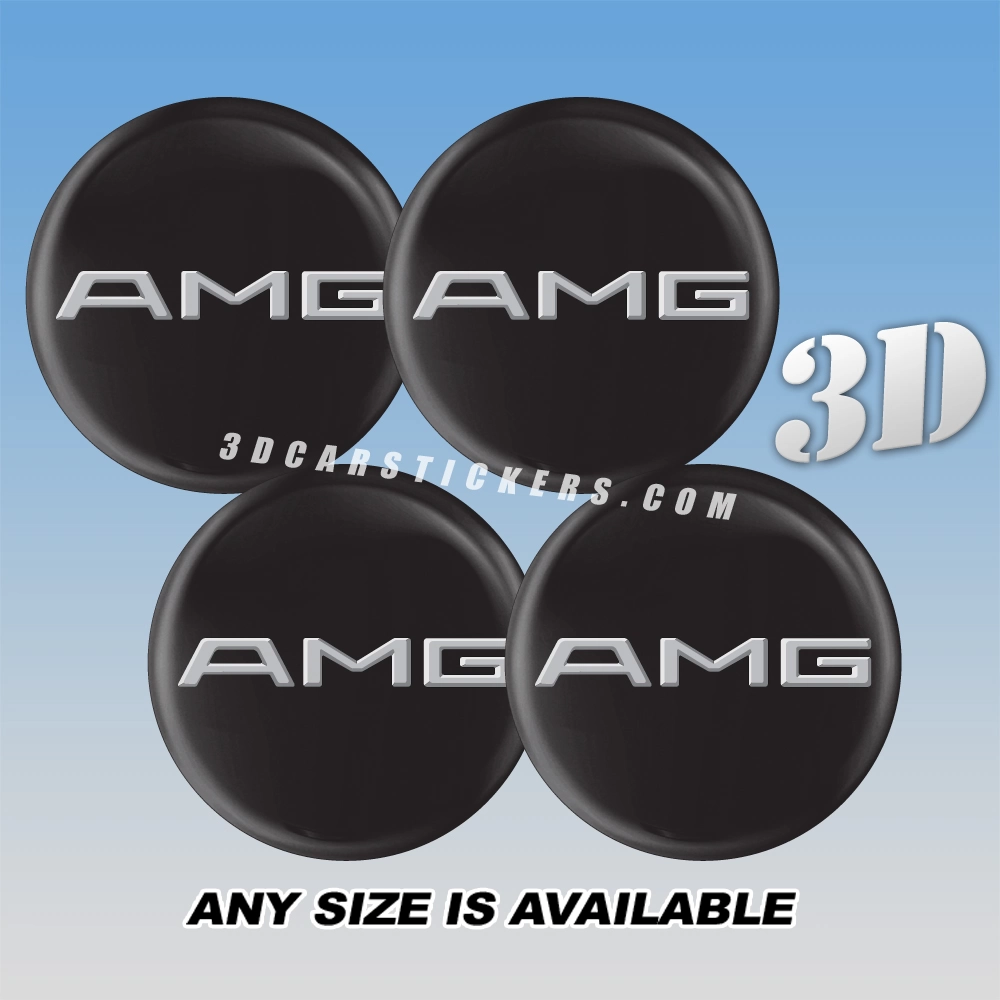 AMG Wheel Center Caps  | Silver/Black — 3D Center Cap Stickers