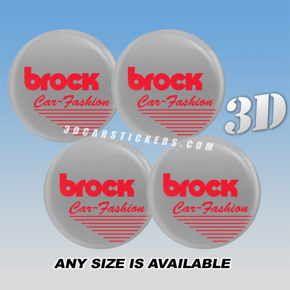 BROCK Decals For Wheel Center Caps — Red Logo/Silver Background