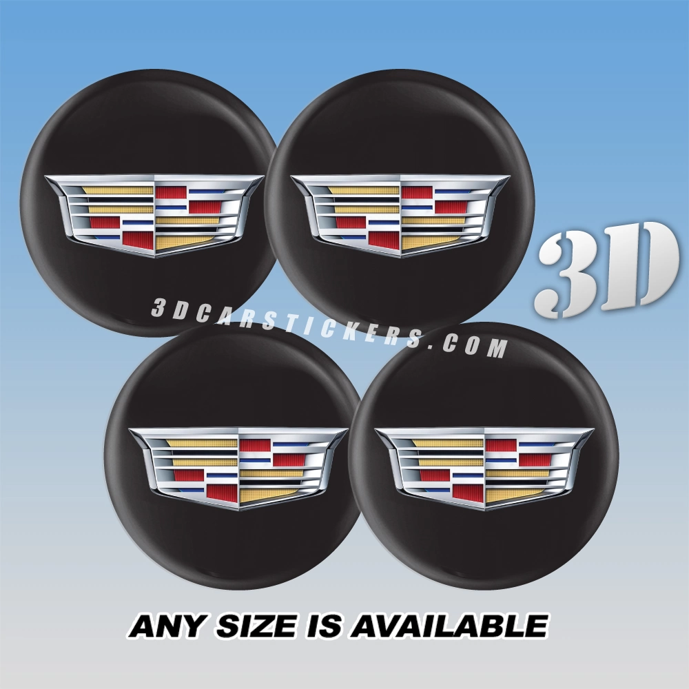 CADILLAC NEW LOGO Domed Wheel Center Caps  | Color/Black — 3D Center Cap Stickers
