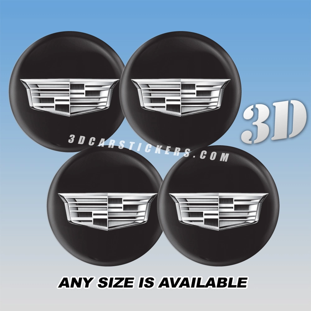 CADILLAC NEW LOGO Domed Wheel Center Caps  | Silver/Black — 3D Center Cap Stickers