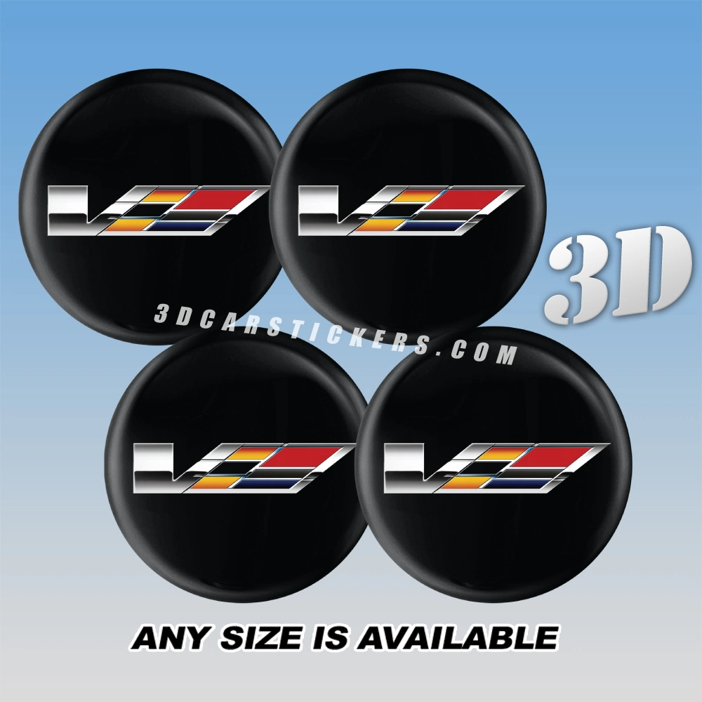 CADILLAC V Domed Wheel Center Caps  | Color/Black — 3D Center Cap Stickers
