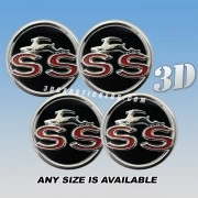 Chevrolet CAMARO SS Decals For Wheel Center Caps — White Logo/Black Background