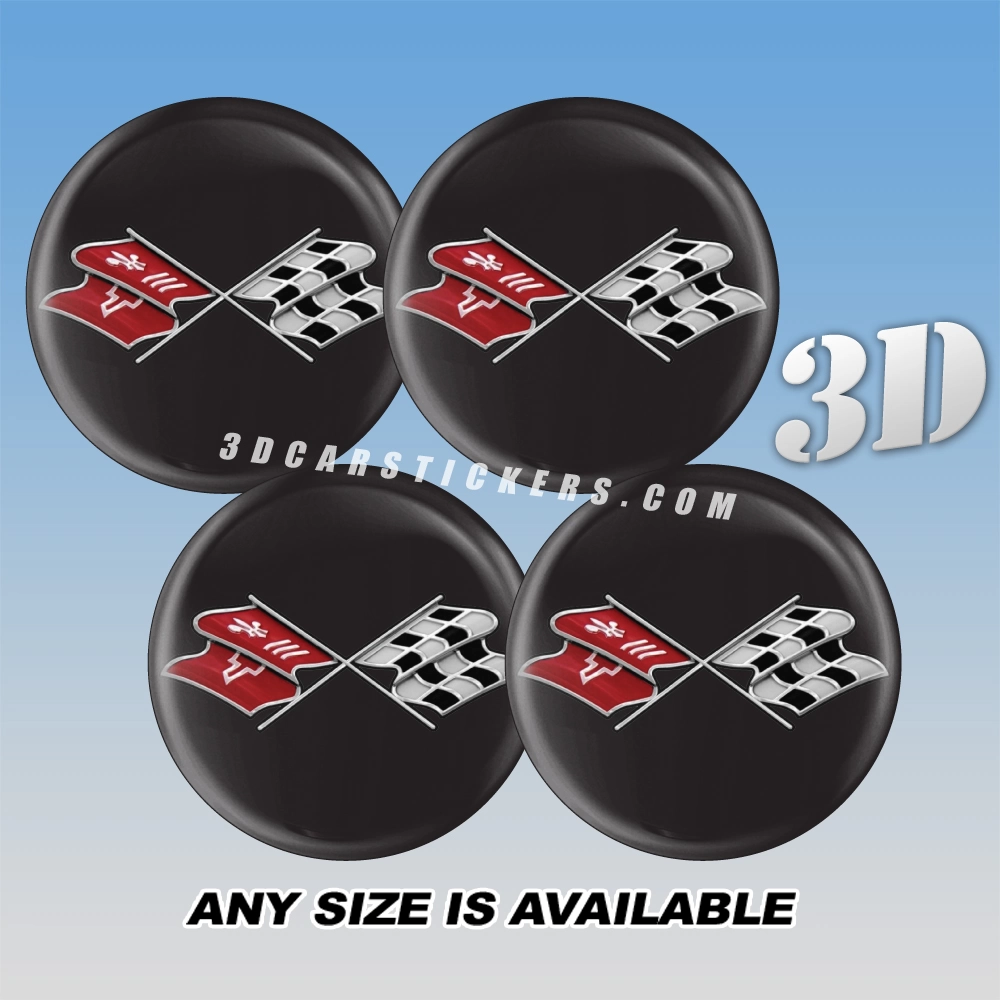 CORVETTE C3 Wheel Center Caps  | Color/Black — 3D Center Cap Stickers