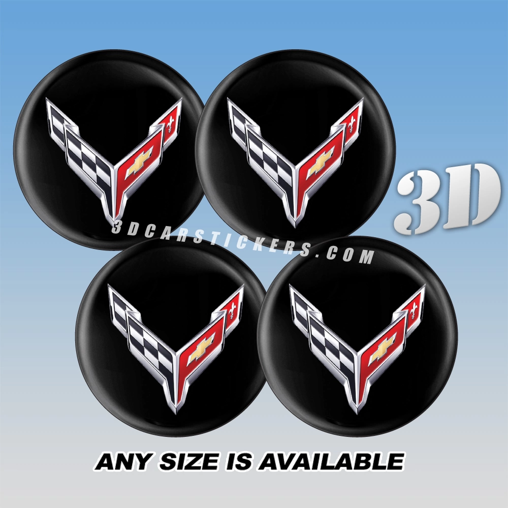 CORVETTE C8 Wheel Center Caps  | Color/Black — 3D Center Cap Stickers