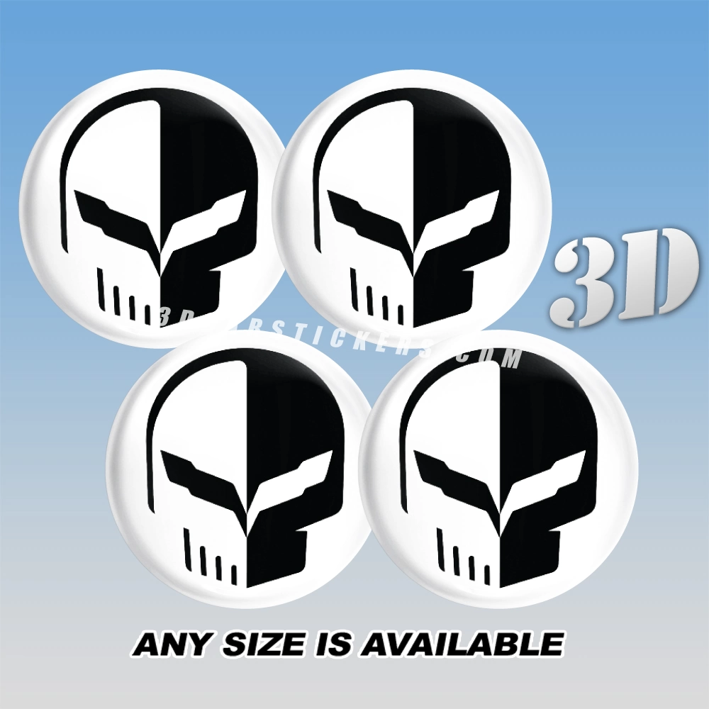 CORVETTE JAKE SCULL Wheel Center Caps  | Black/White — 3D Center Cap Stickers