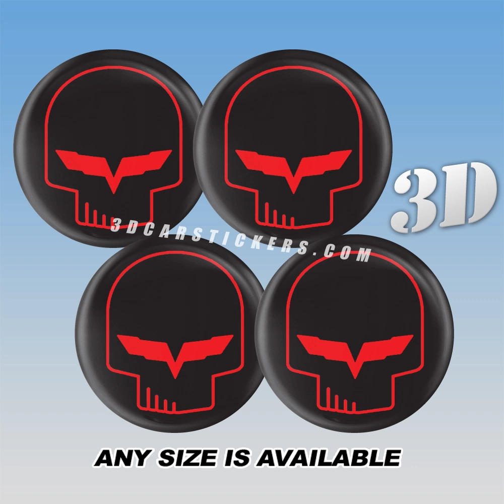 CORVETTE JAKE SCULL Wheel Center Caps  | Red Outline/Black — 3D Center Cap Stickers