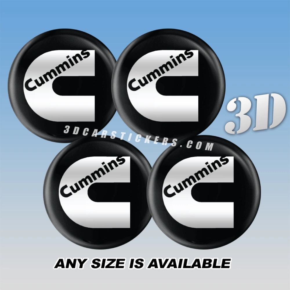 CUMMINS Wheel Rim Center Caps  | Silver/Black — 3D Center Cap Stickers