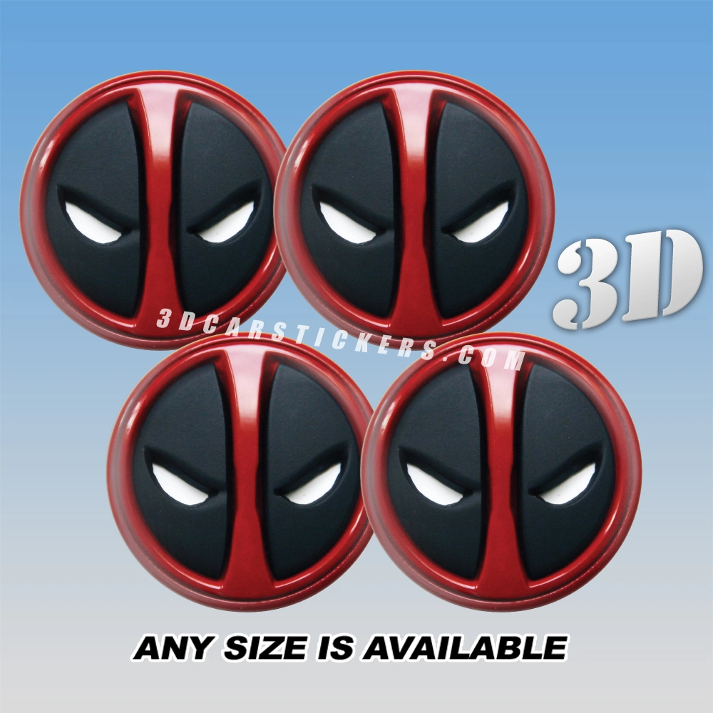 DEADPOOL Wheel Center Caps  | Red/Black — 3D Center Cap Stickers