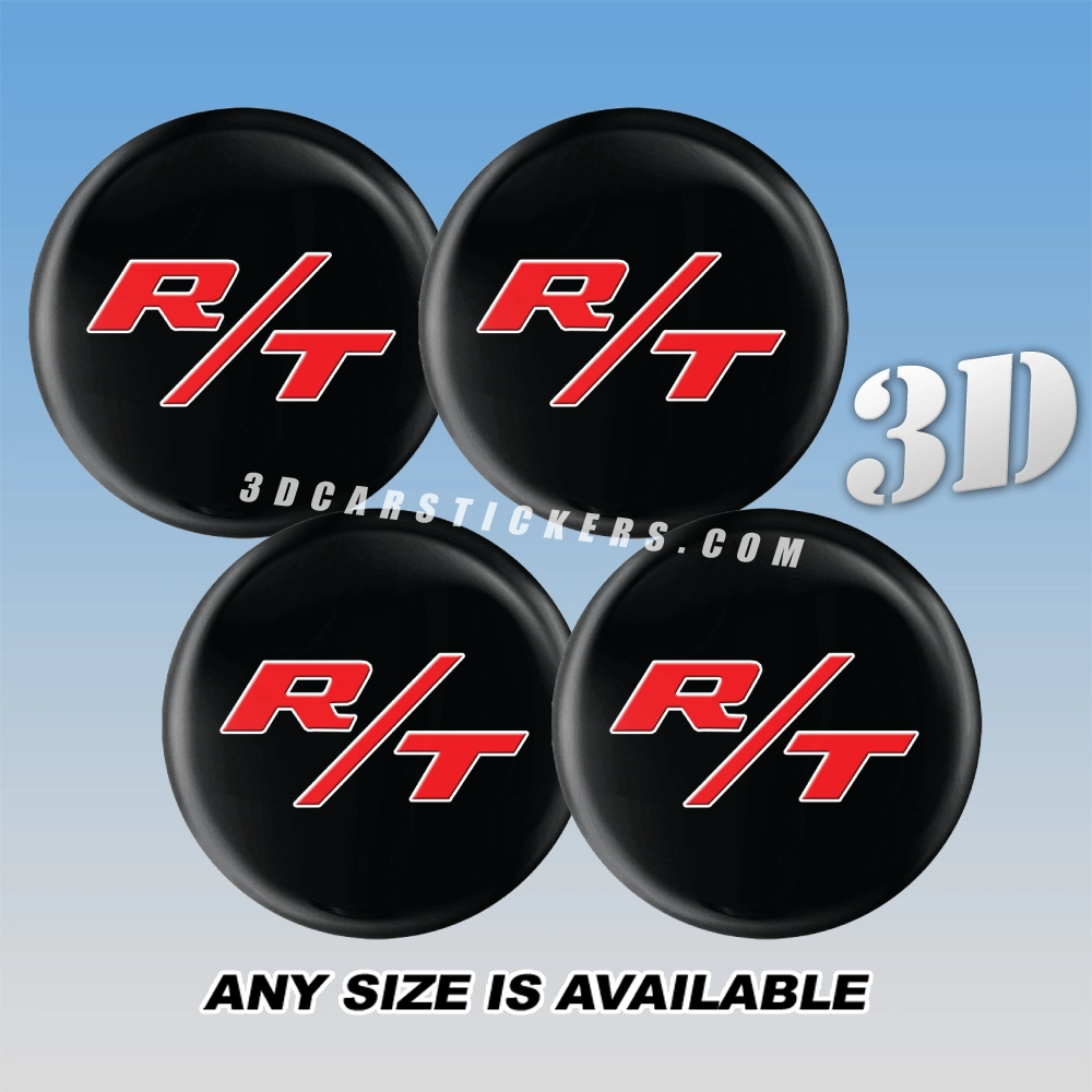 DODGE R/T Decals For Wheel Center Caps — Red Logo/Black Background