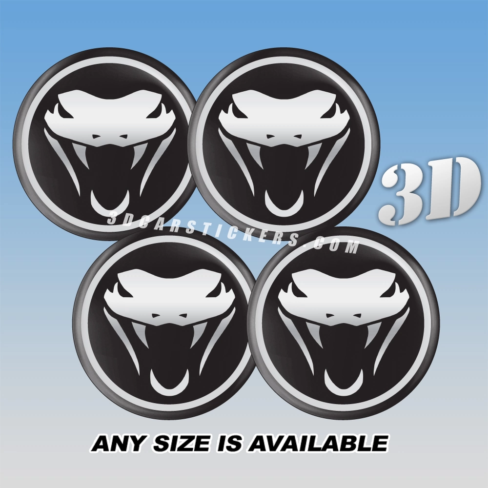 DODGE VIPER "FANGS" Wheel Center Caps  | Silver/Black — 3D Center Cap Stickers