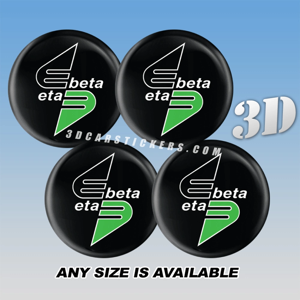 ETA-BETA Decals For Wheel Center Caps — White/Green Logo/Black Background