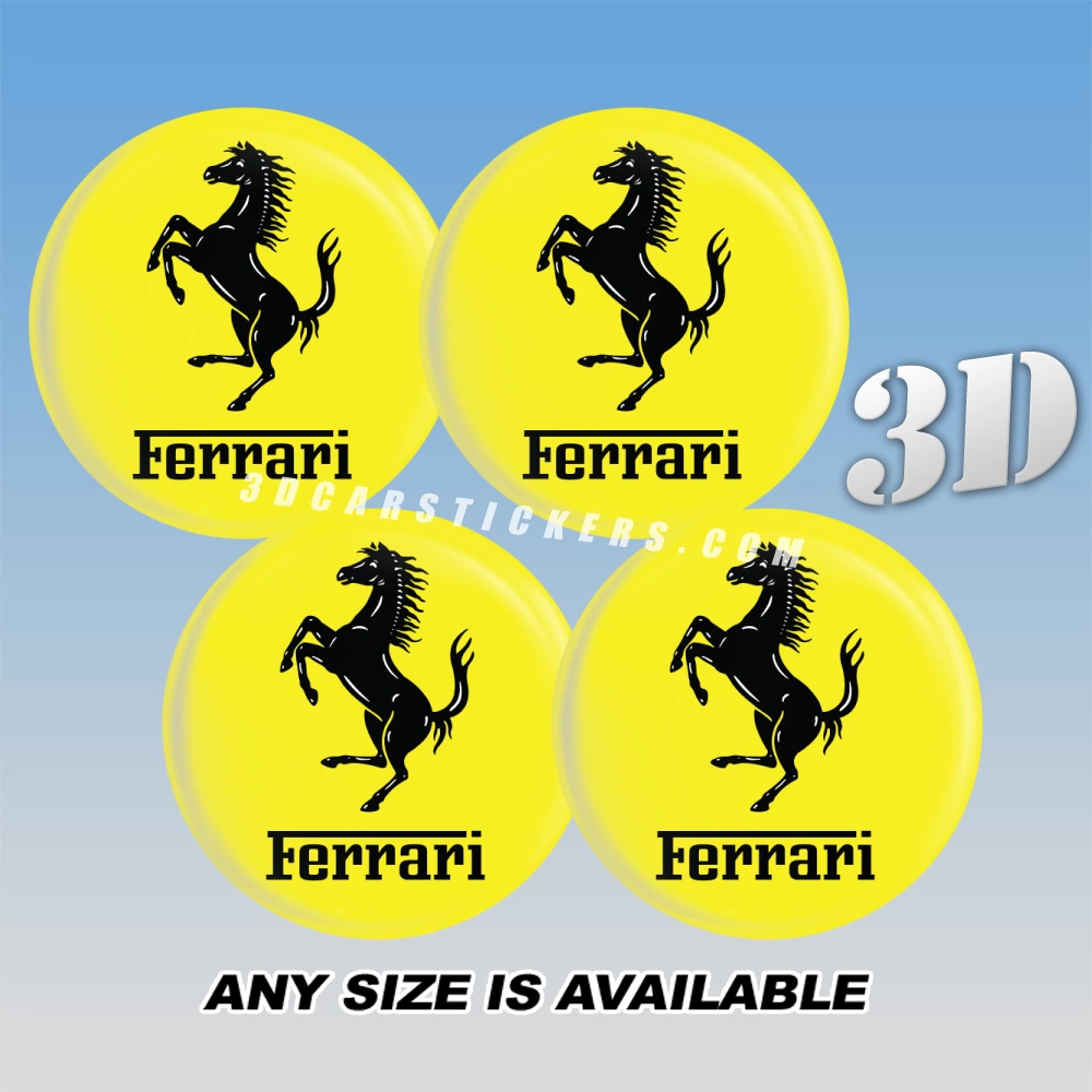 FERRARI Wheel Center Caps  | Black Horse And/Yellow — 3D Center Cap Stickers