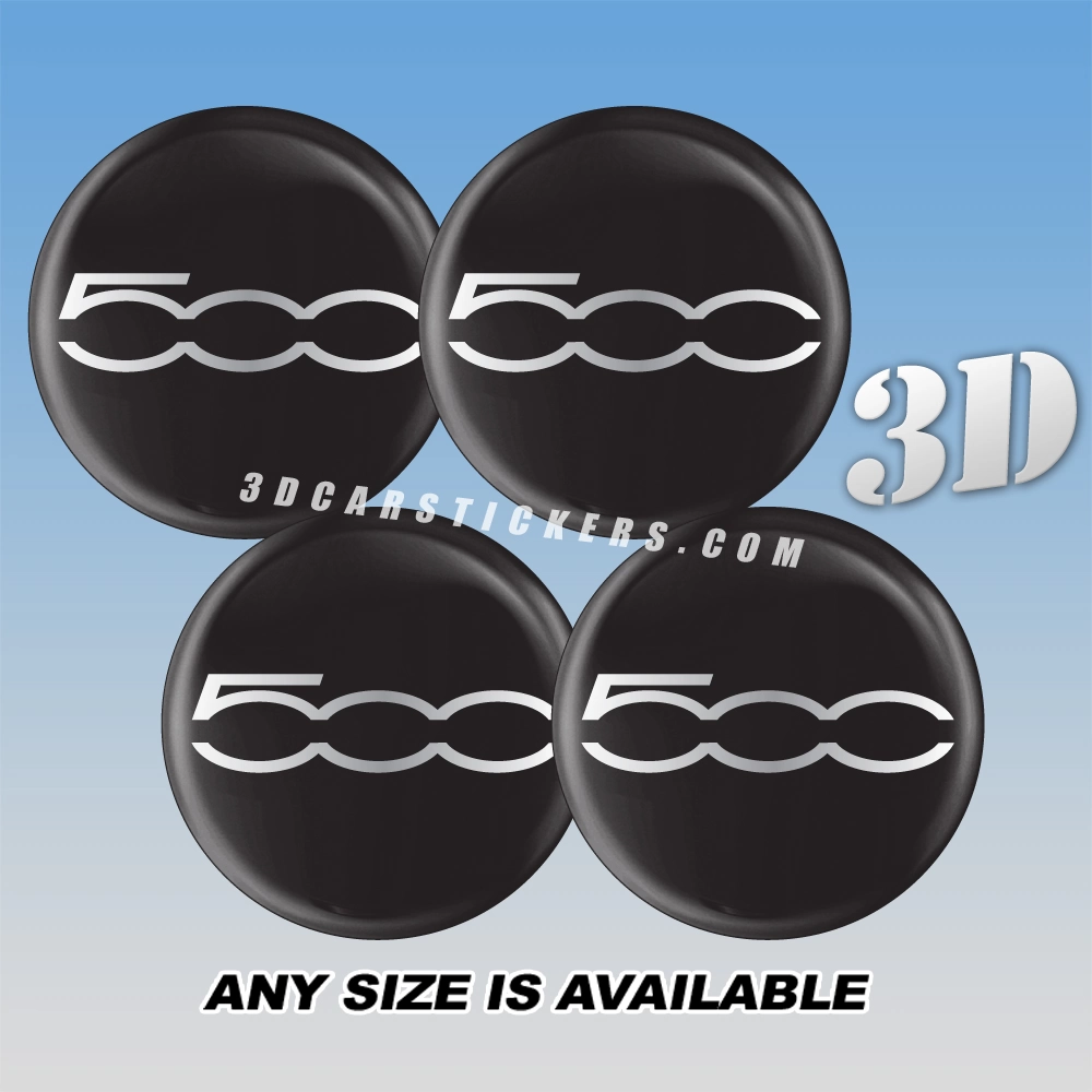 FIAT 500 3d car wheel center cap emblems stickers decals  :: Silver logo/black background :: ― Online shop 3D wheel center caps