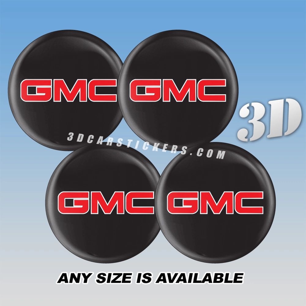 GMC Decals For Wheel Center Caps — Red Logo/White Outline/Black Background
