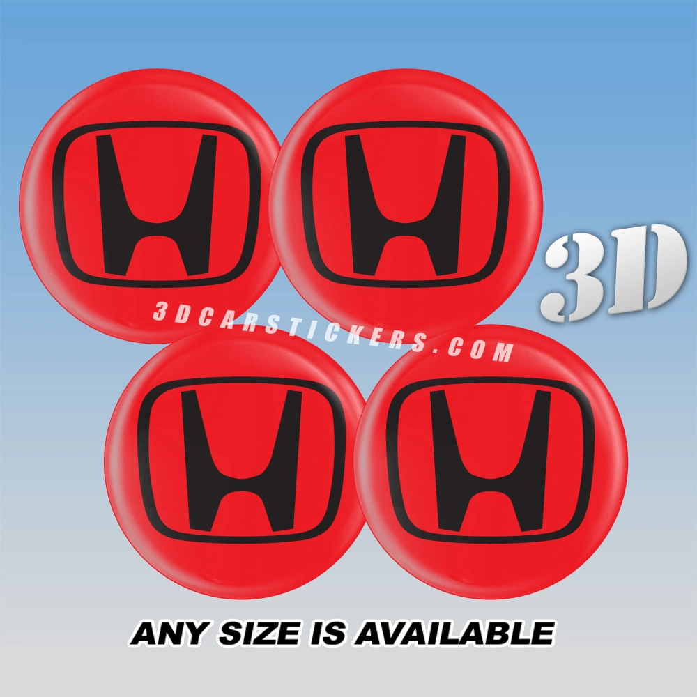 HONDA Wheel Center Caps  | Black/Red — 3D Center Cap Stickers