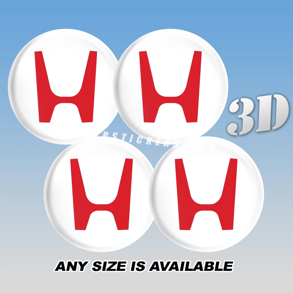 HONDA Wheel Center Caps  | Red/White — 3D Center Cap Stickers