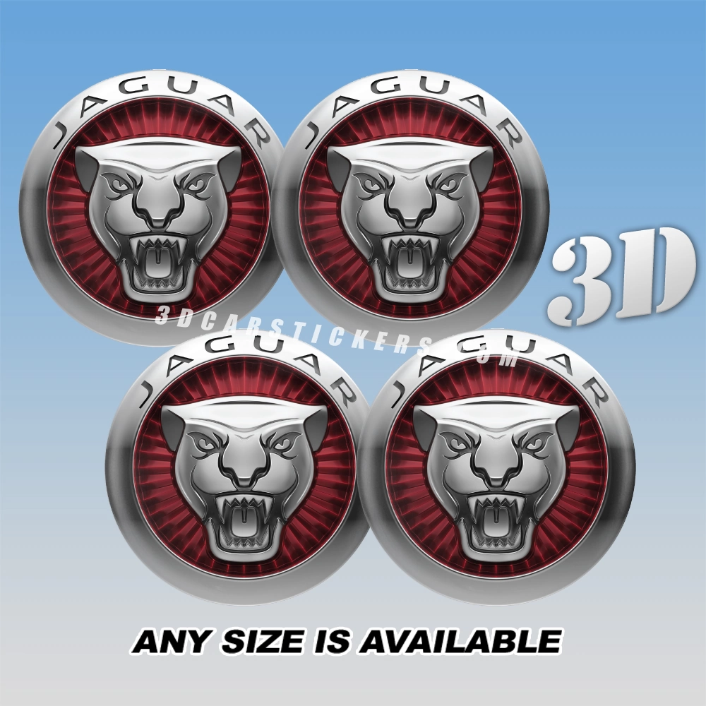 JAGUAR Wheel Center Caps  | Red/Silver — 3D Center Cap Stickers