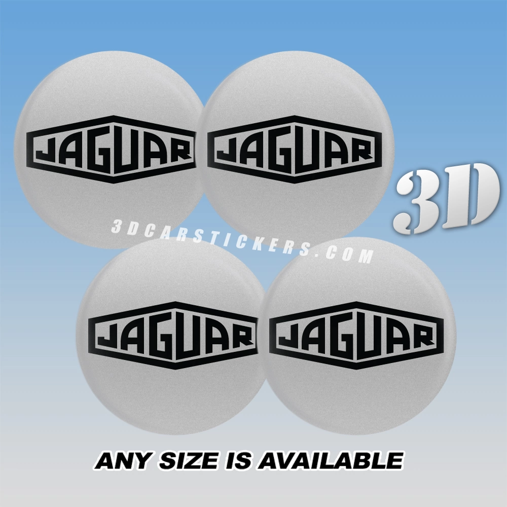 JAGUAR OLD Wheel Center Caps  | Black/Silver — 3D Center Cap Stickers