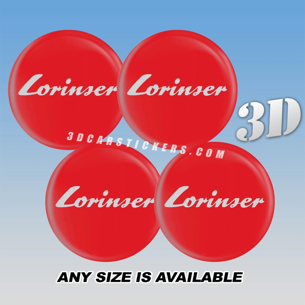 LORINSER Wheel Center Caps  | Silver/Red — 3D Center Cap Stickers