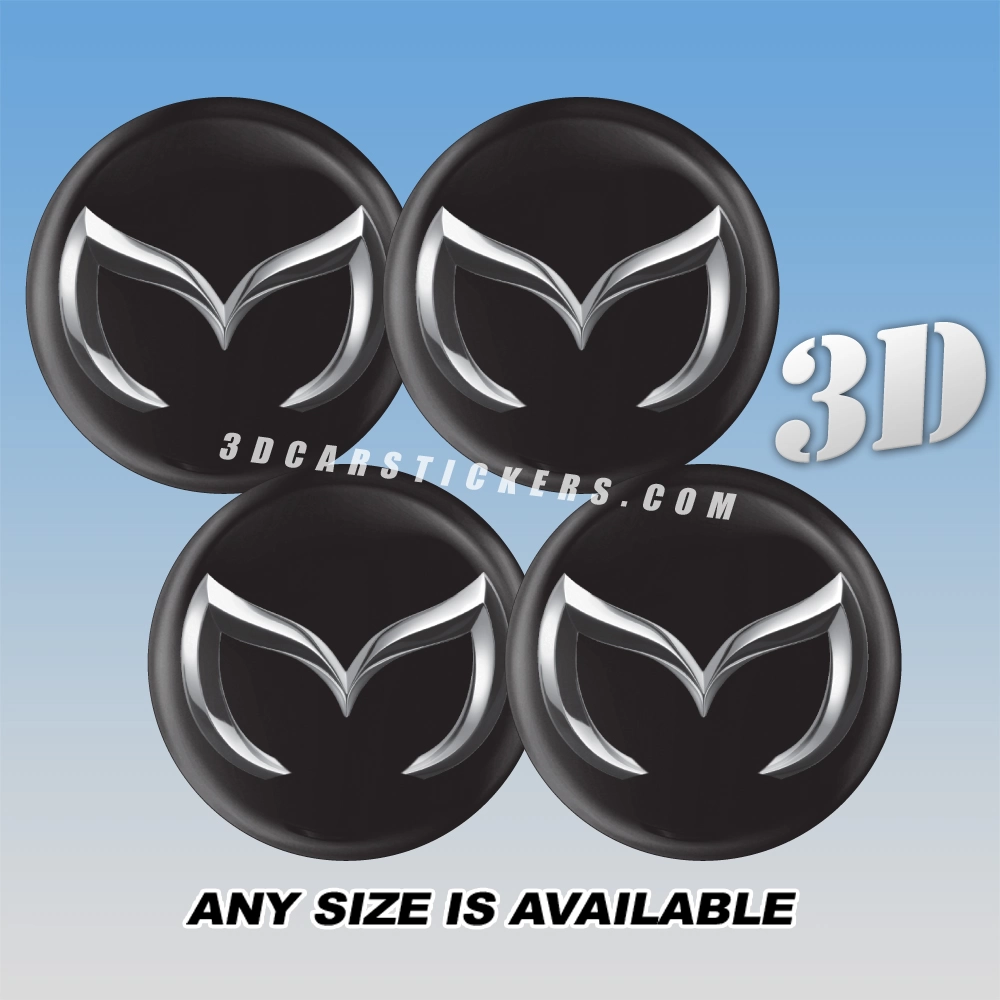 MAZDA EVILL Wheel Center Caps  | Silver/Black — 3D Center Cap Stickers
