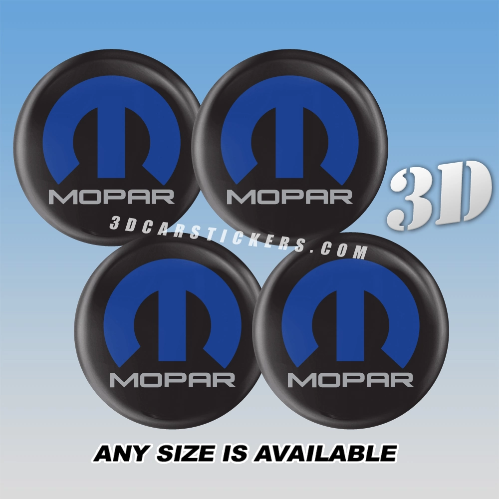 MOPAR Decals For Wheel Center Caps — Blue-Silver logo/Black background