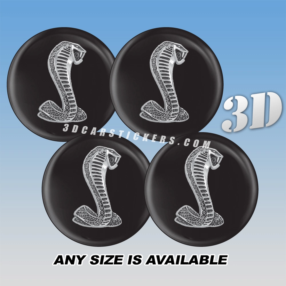 MUSTANG COBRA SHELBY Wheel Center Caps  | Silver/Black — 3D Center Cap Stickers