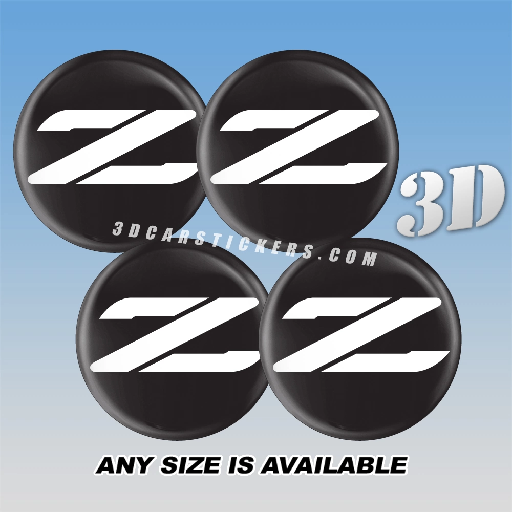 NISSAN Z-LOGO Domed Wheel Center Caps  | White/Black — 3D Center Cap Stickers