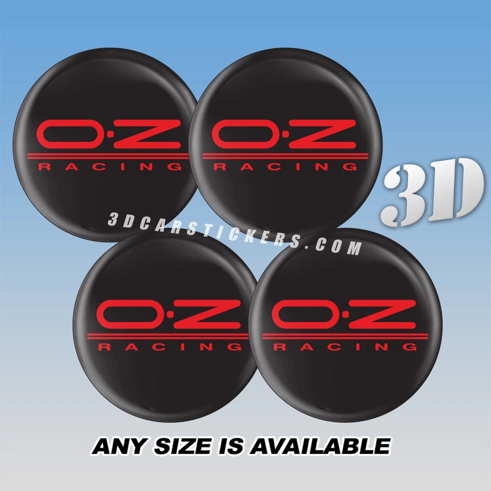 OZ RACING Domed Wheel Rim Center Caps  | Red/Black — 3D Center Cap Stickers