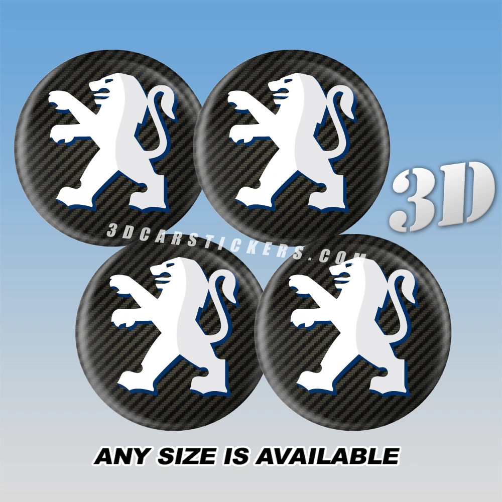 PEUGEOT 3d car decals for wheel center caps | White logo/Carbon background — 3D Center Cap Stickers