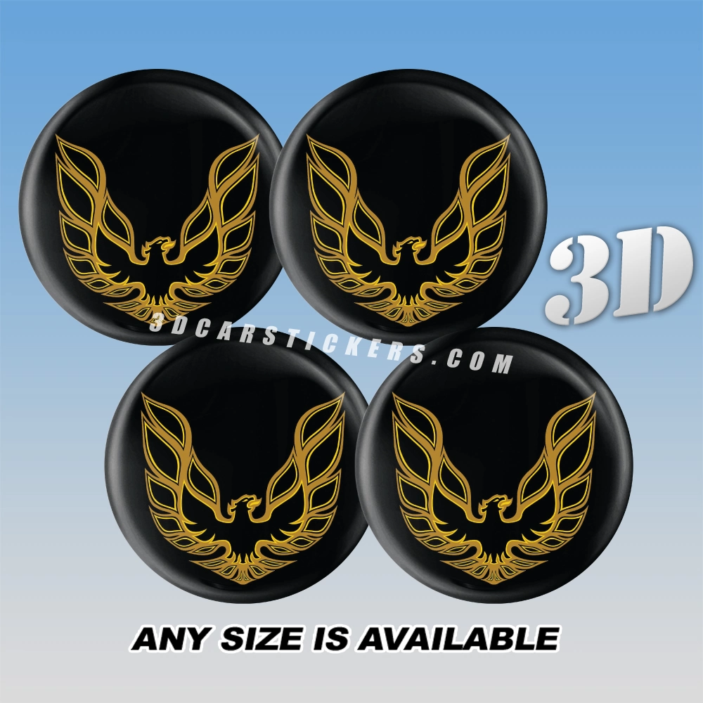 PONTIAC FIREBIRD Domed Wheel Center Caps  | Gold/Black — 3D Center Cap Stickers