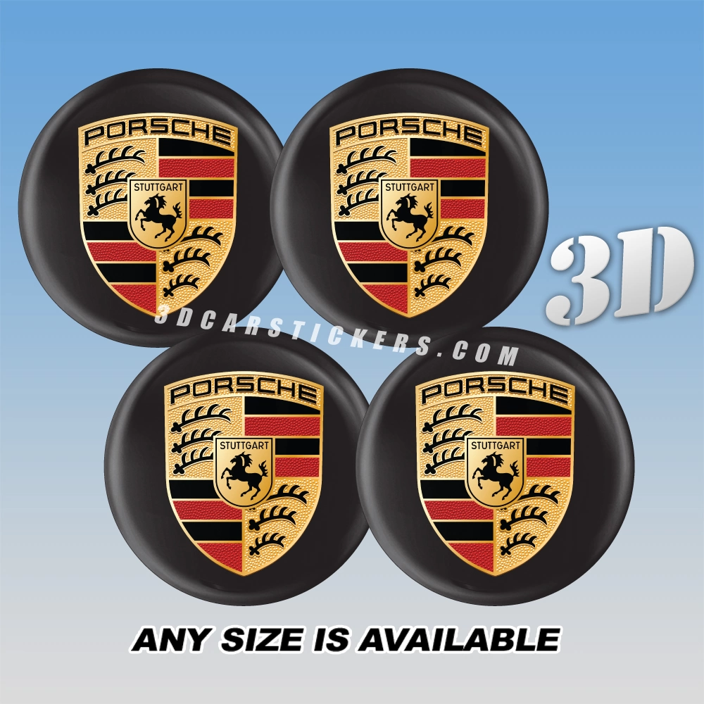 PORSCHE Wheel Center Caps  | Color/Black — 3D Center Cap Stickers