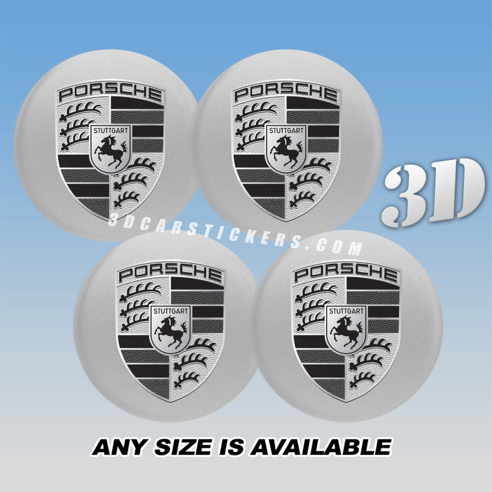 PORSCHE Wheel Center Caps  | Silver/Silver — 3D Center Cap Stickers