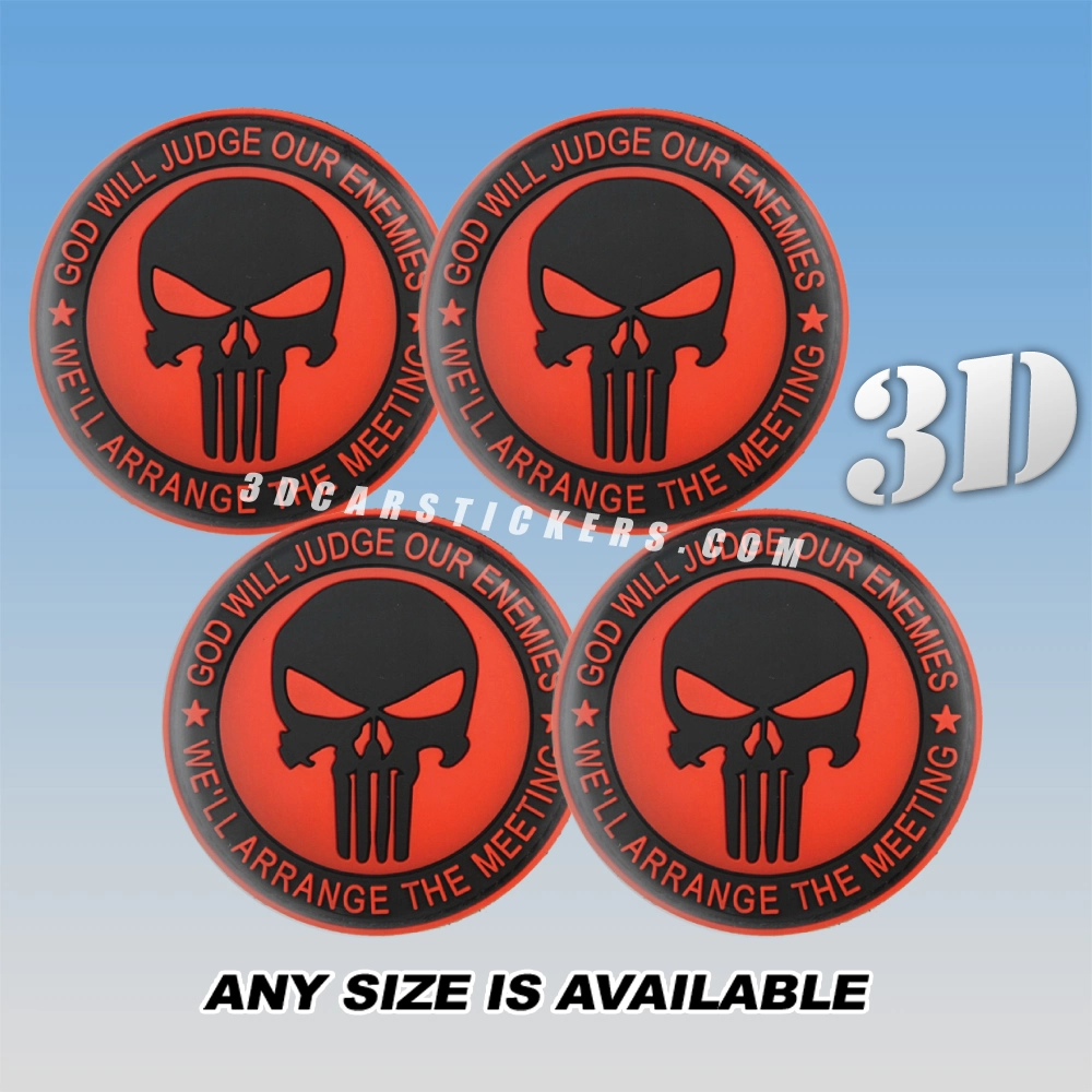 PUNISHER Wheel Center Caps  | Black/Red — 3D Center Cap Stickers