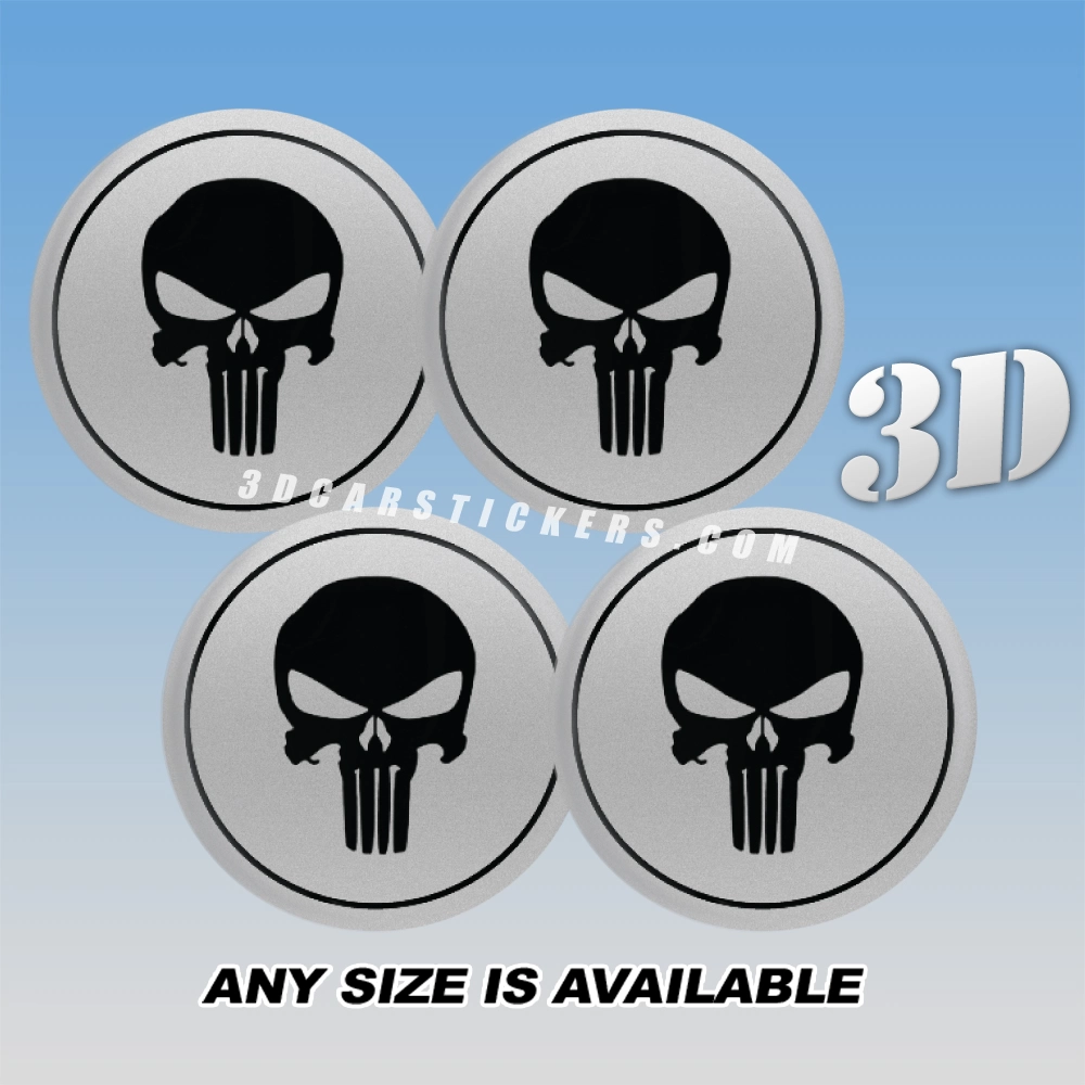 PUNISHER Wheel Center Caps  | Black/Silver — 3D Center Cap Stickers