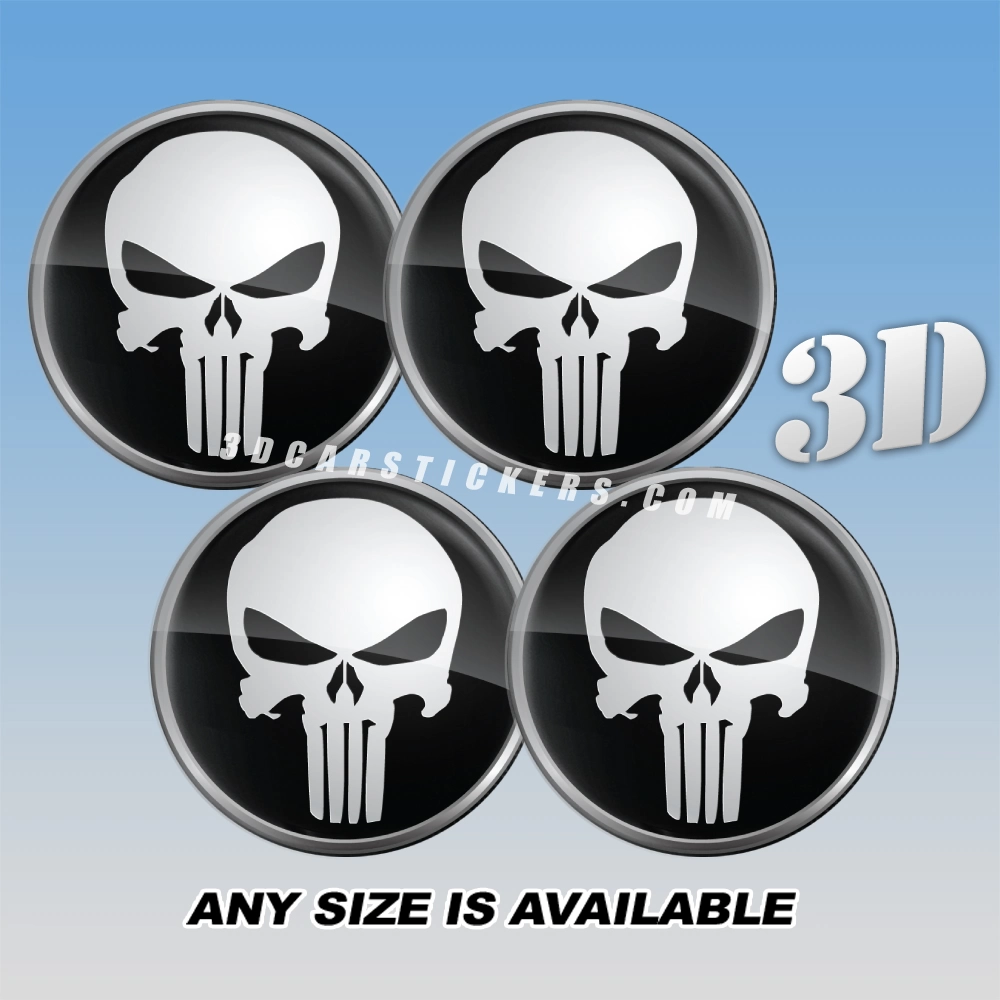 PUNISHER Wheel Center Caps  | Silver/Black — 3D Center Cap Stickers