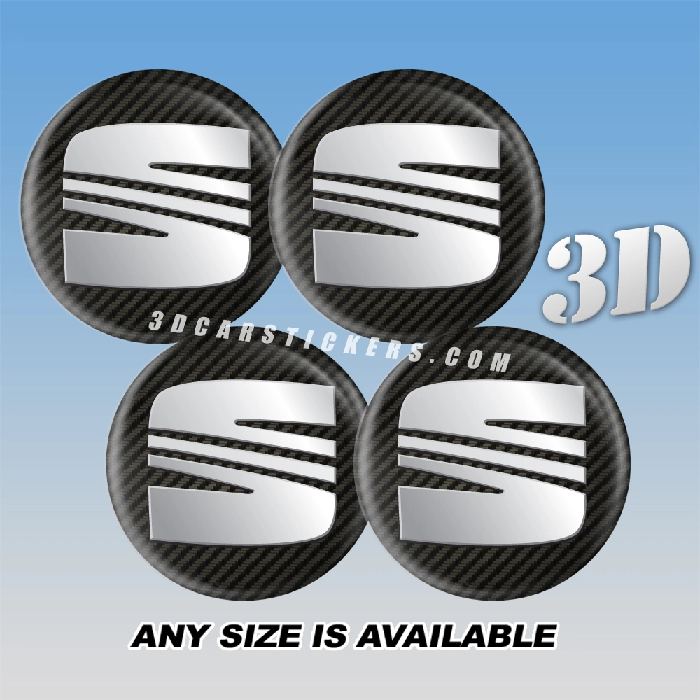 SEAT compatible СARBON LOOK Wheel Center Caps  — 3D Center Cap Stickers