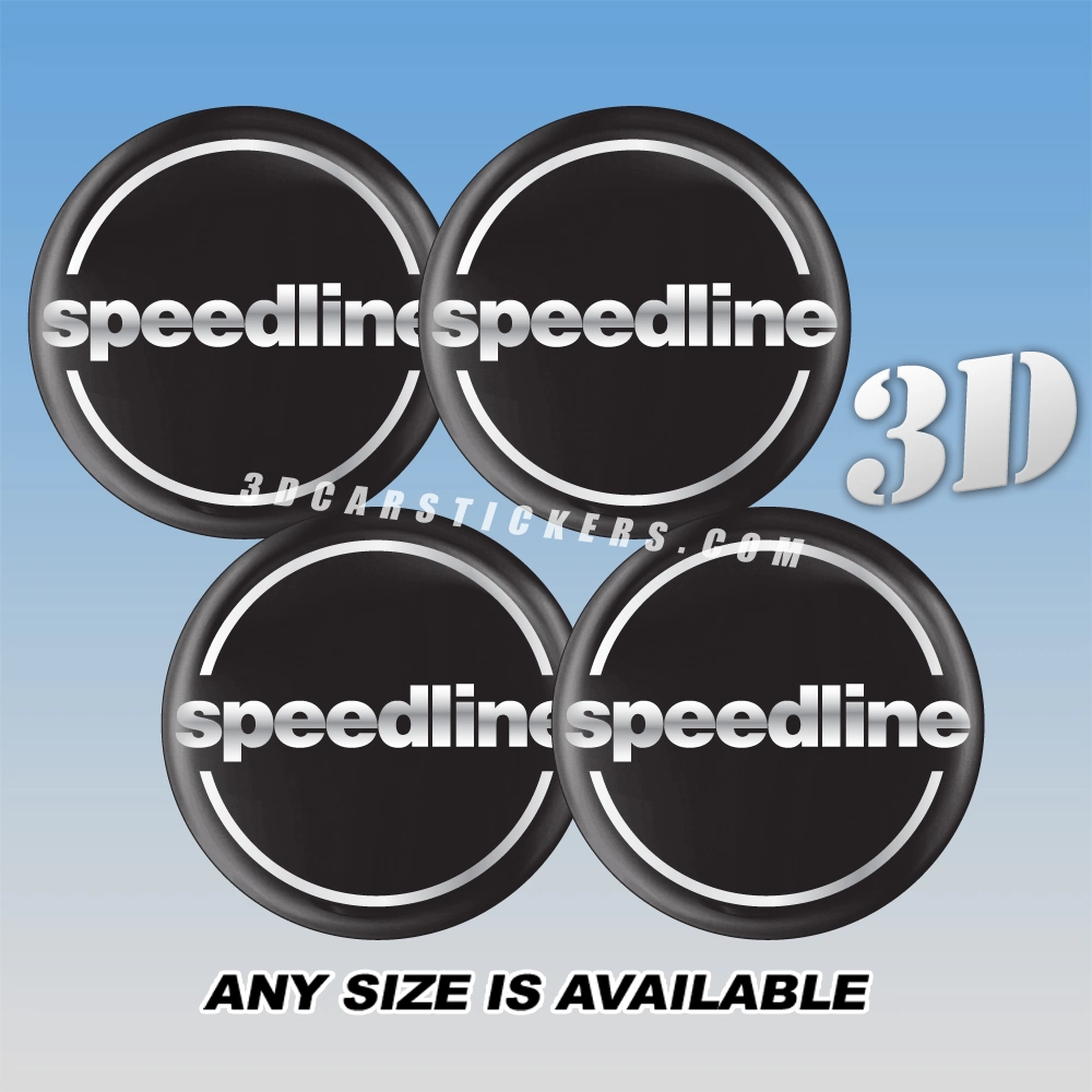 SPEEDLINE Wheel Rim Center Caps  | Silver/Black — 3D Center Cap Stickers