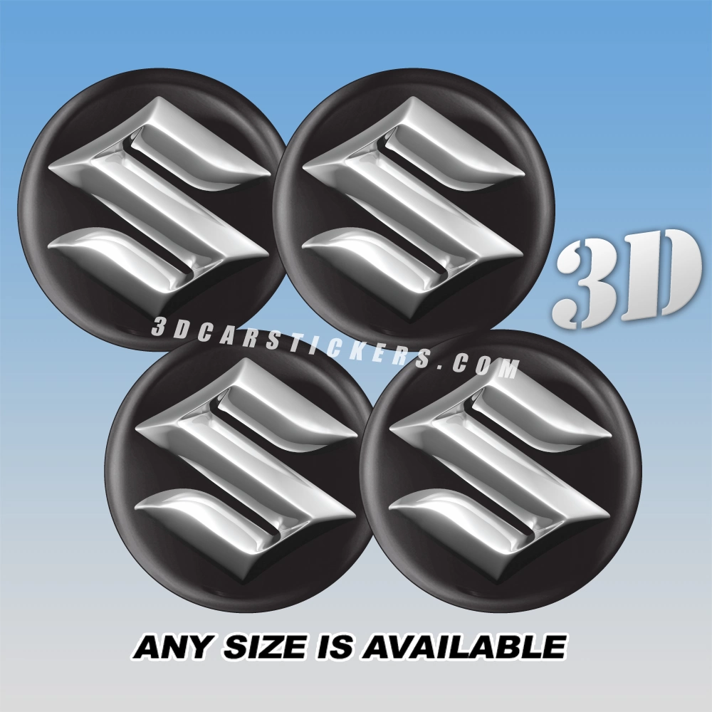 SUZUKI Domed Wheel Center Caps  | Silver/Black — 3D Center Cap Stickers