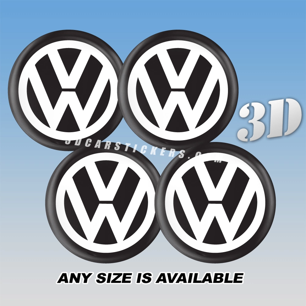 VOLKSWAGEN Wheel Center Caps  | White/Black — 3D Center Cap Stickers