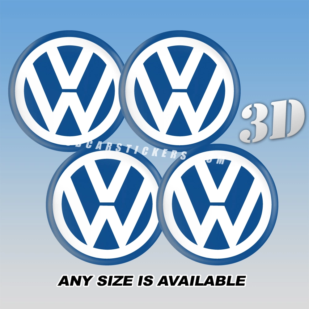 VOLKSWAGEN Wheel Center Caps  | White/Blue — 3D Center Cap Stickers