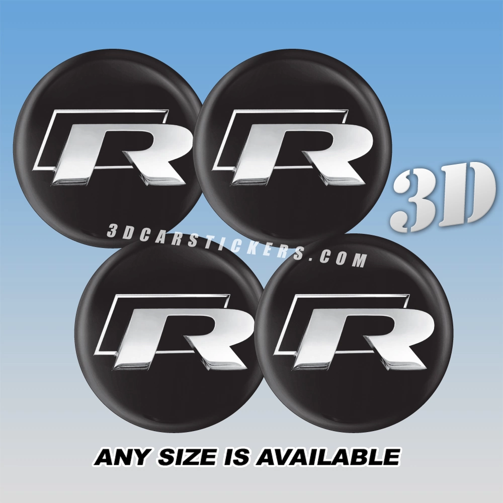 VOLKSWAGEN R-LINE Wheel Center Caps  | Silver/Black — 3D Center Cap Stickers