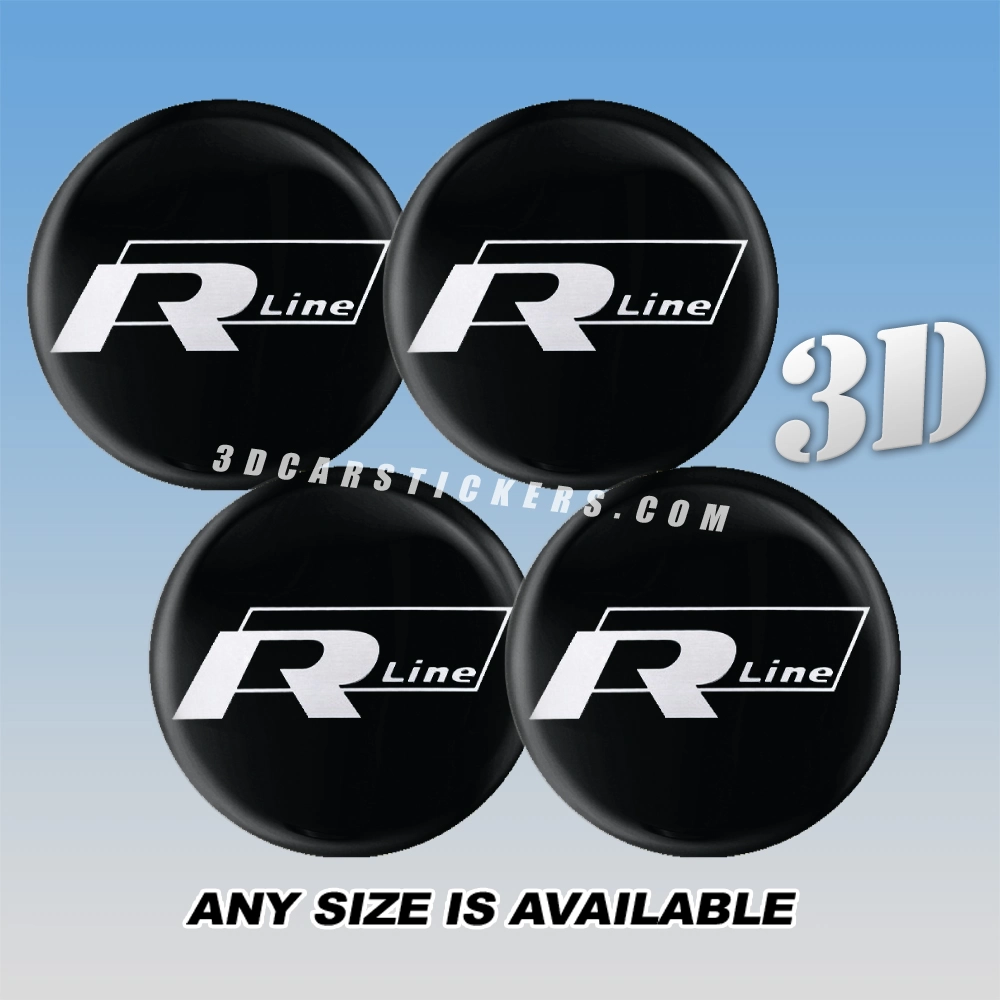 VW R-LINE Wheel Center Caps  | Silver/Black — 3D Center Cap Stickers